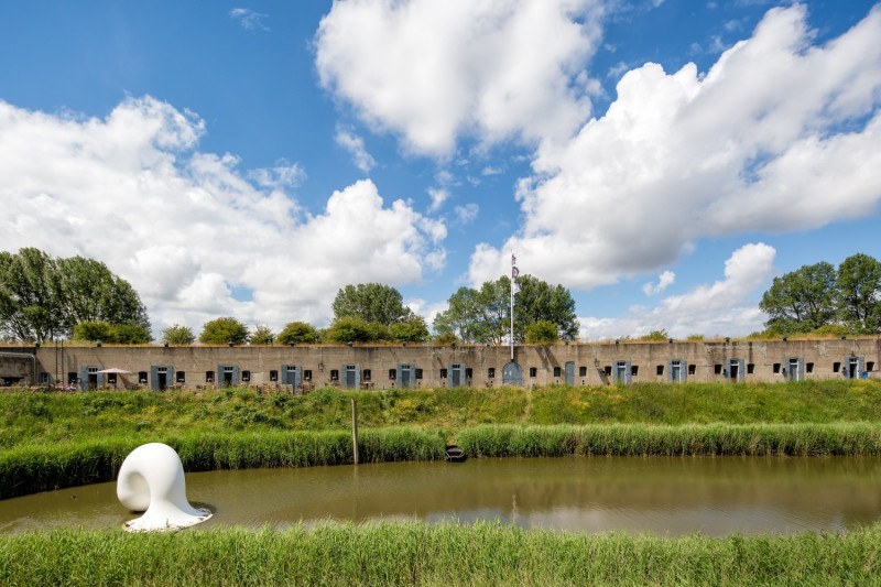 The fortress island of Vijfhuizen has been a destination for art since 2005, an extraordinary place where the visual arts and military heritage come together. The exhibitions reflect the fort’s surroundings: a collage of artificial landscapes in which nature is utilized for various—now often obsolete—purposes. The Kunstfort is a place where space, time, and image intermesh. The programming is inspired by science fiction—artists create alternative realities and question existing systems. Recurring themes are climate and landscape, border politics and defense models, technology and ritual, and dystopia and apocalypse. This is presented in exhibitions, interventions in outdoor spaces, and multidisciplinary exchanges.