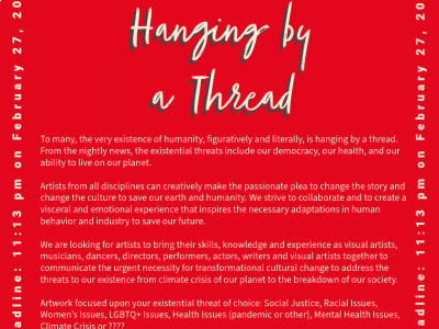We are looking for artists to bring their skills, knowledge and experience as musicians, dancers, directors, performers, actors, writers and visual artists together to communicate the urgent necessity for transformational cultural change to address the threats to our existence from climate crisis of our planet to the breakdown of our society. Email for Submission Instructions: hangingbyathread.9.1@gmail.com