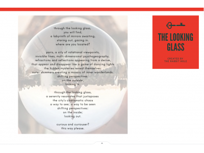 “the looking glass” is a space for community, both as an actual experience in Paris, as well as online through the rabbit hole’s global network of artists, and partner institutions.