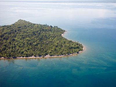 Rabbit Island is 91 acres of forest and sandstone located in Lake Superior—the largest body of freshwater in the world—four miles east of Michigan’s Keweenaw Peninsula within the traditional territory of the Anishinaabe. The island is composed of a native ecosystem and has never before been developed or subdivided. It is a unique wilderness environment home to a variety of flora and fauna including large white pines, red maples, bald eagles, nesting birds, salamanders, and much more. A number of fish including salmon and native lake trout swim in the waters surrounding the island. The weather is ever-present and can vary day-to-day, creating beautiful vistas and humbling experiences. A conservation easement assures the ecosystem will remain healthy in perpetuity. The island serves as a platform for contemporary art, science, and conservation.