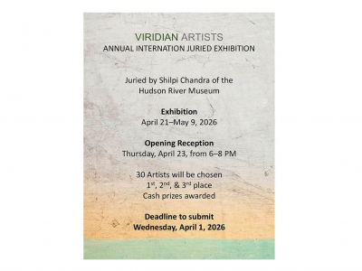 Viridian Artists Gallery is proud to present its 34th International Juried Exhibition, juried by Shilpi Chandra, Assistant Curator at the Hudson River Museum.